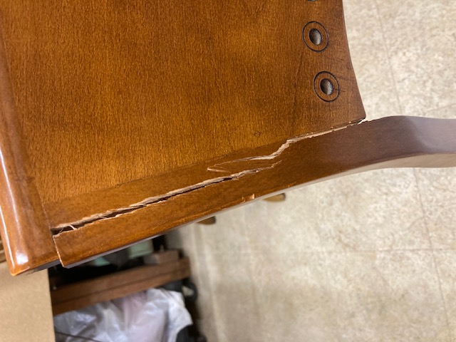 I receive damaged furniture in many conditions and found this example quite unique and amusing. It did serve the purpose until I was found! |